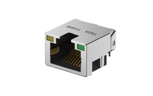 RJ45 Connector 90°Angle, 1Port, 1μ", Black, L:yellow, R:green,