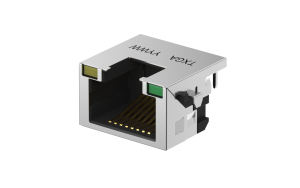 RJ45 Connector 90°Angle, 1Port, 2μ", Black, L:orange, R:green,