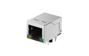 RJ45 Connector 90°Angle, 1Port, Gold flash, Black, L:green, R:yellow, 1000Base-T