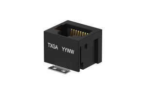RJ45 Connector 180°Vertical, 1Port, Gold flash, Black, Non-LED,