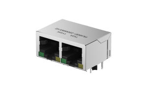 RJ45 Connector 90°Angle, 2Ports, 6μ", Black, L:green, R:yellow, 1000Base-T