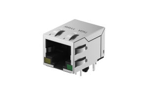 RJ45 Connector 90°Angle, 1Port, Gold flash, Black, L:yellow, R:green,