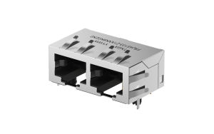 RJ45 Connector 90°Angle, 2Ports, Gold flash, Black, Non-LED (10P8C)