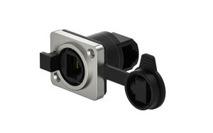 RJ45 Adapter, 1Port, 0.025μm, Right angle(90°), Black, Latch-lock, IP65 (CAT5)