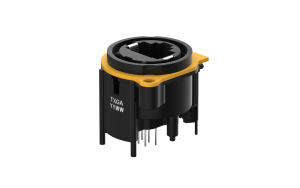 RJ45 Connector, 180°Vertical, Through hole, 1Port, Black, Yellow Round panel, Without lock, CAT5e