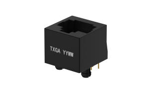 RJ45 Connector, Vertical(180°), Through hole, 1Port, Gold flash, Black,