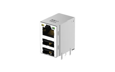 RJ45+Double USB2.0 Combo jack, Right angle(90°), Through hole, Black, L:yellow, R:green, 1000Base-T