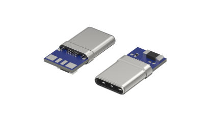 USB3.1, Type C, 16Circuits, Male, Vertical(180°), Soldering, Black, 4 Pads (PTC, RP)
