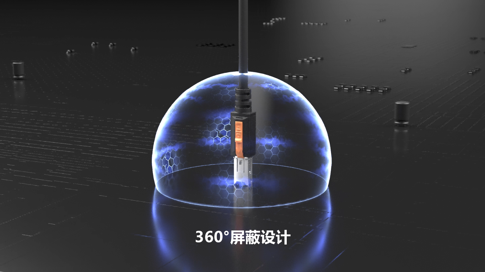 The shielded connector is matched with a shielded cable, featuring a 360° shielding design to prevent external electromagnetic signal interference and ensure high-speed data transmission.