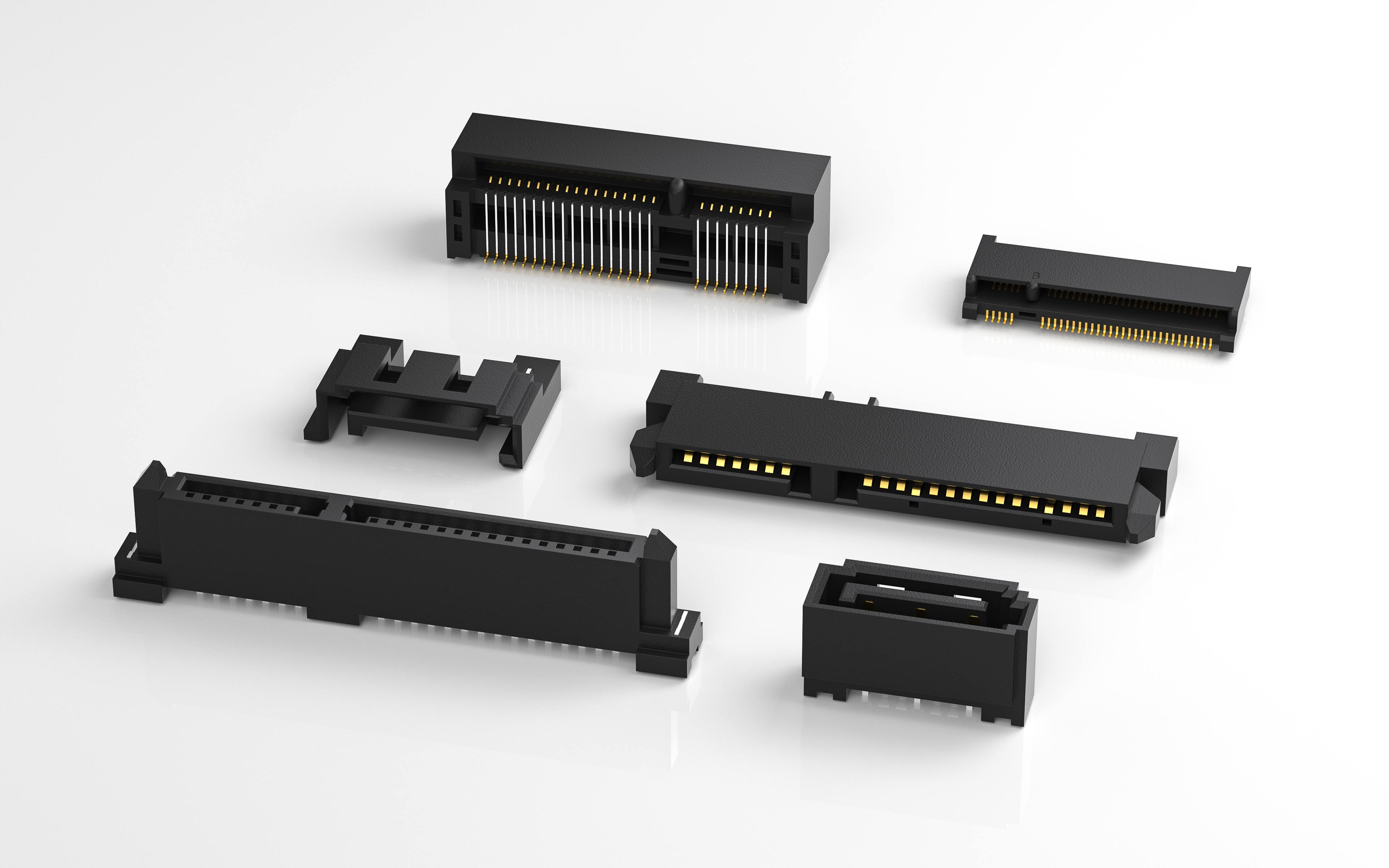 It has 7, 7+6, 7+15 and other different bits. The combination of different bits can realize simultaneous interpreting of signal and power supply. The bottom of the SATA interface is equipped with positioning columns and positioning harpoons, which can be more firmly installed on the PCB board. There are two installation methods available: through-hole welding and surface mount, with hot swappable function.